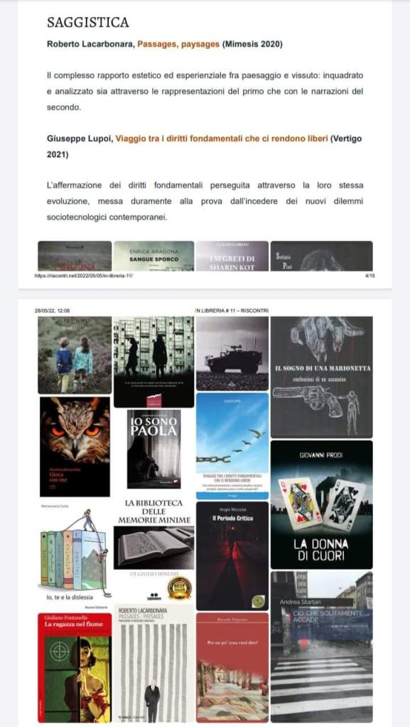 L’ Opera è stata inserita nella rubrica letteraria dell’ Associazione Riscontri, come pubblicazione meritevole nell’ambito del concorso ” Un libro in Vetrina” 2022